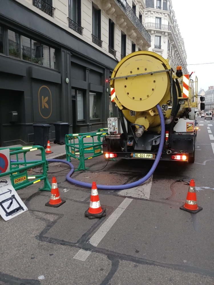 NOVEAX votre entreprise familiale d'assainissement à réalisé la Vidange d'un bac à graisse dans un restaurant à Lyon 2 qui comprend :